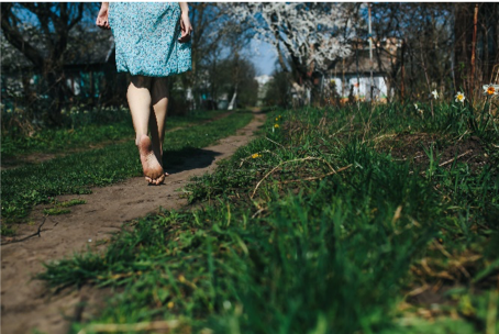 Walking barefoot on natural surfaces like grass, sand, or stones enhances blood flow, improving overall circulation and oxygen delivery.